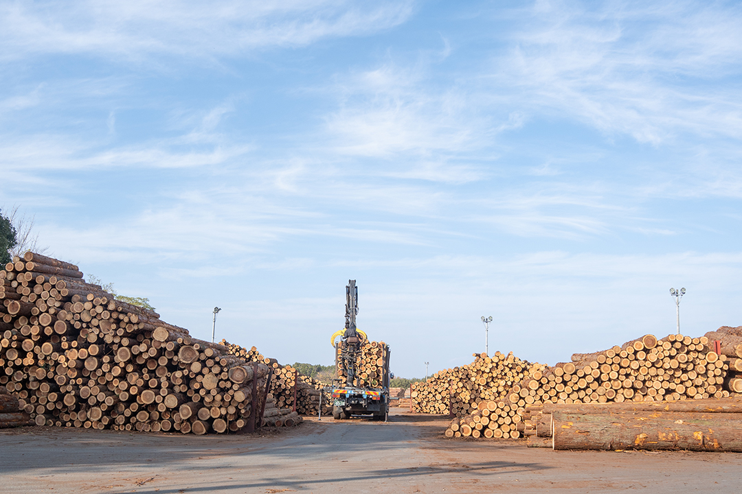 「弊社の主な事業は、大きく4つに分けられます。一つ目が丸太を扱う原木市場の事業です。二つ目が角材や板材などに加工された木材製品を扱う製品市場です。そして三つ目が木造建築の構造材等を工場で加工するプレカット事業となります。