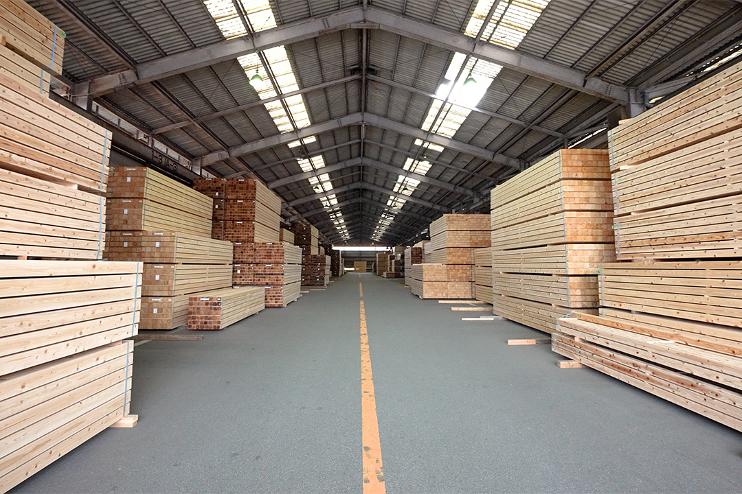 「弊社製品市場へグリーン材製品を出荷していただいている製材工場様、また弊社原木市場(本社・人吉支店)から原木を購入していただいている製材工場様から一次製材をしただけの状態の“荒材”を供給していただき、当社の高温乾燥設備で乾燥させ、さらにモルダー工場で仕上げをしてKD材製品として出荷する体制を整えています。