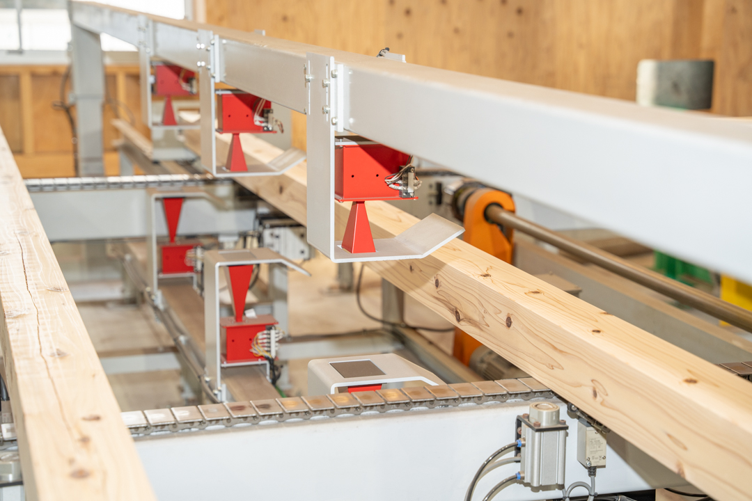 当時は乾燥設備を設置するための敷地の問題があったのですが、本社に隣接する土地を購入することができ、そこに原木用の第2・第3土場を新設し、敷地の余裕ができたので乾燥加工施設の導入に取り掛かることができました。その中で、設備は林野庁の施設等整備の補助金を活用し、また建屋は(一社)全国木材組合連合会が実施するJAS構造材実証支援事業のご支援をいただくことができ、設備の設置を進め、2025年5月末に竣工式を行い、6月頃から本格的に稼働させております。現在、製品強度と含水率のデータを取りながらJAS認証取得に向けて準備(2026年1月現在)しているところです。」