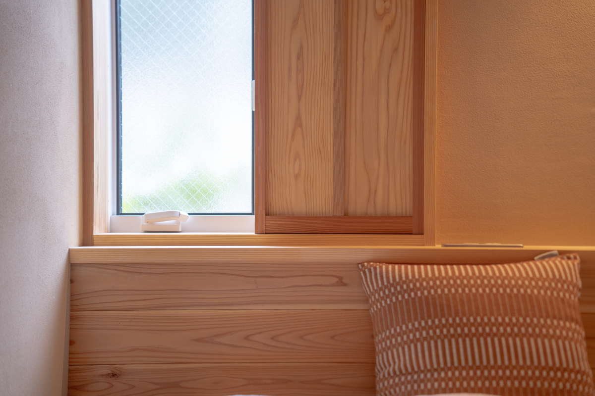 節や色のバラつきが少ないランクのスギ板を選んだ