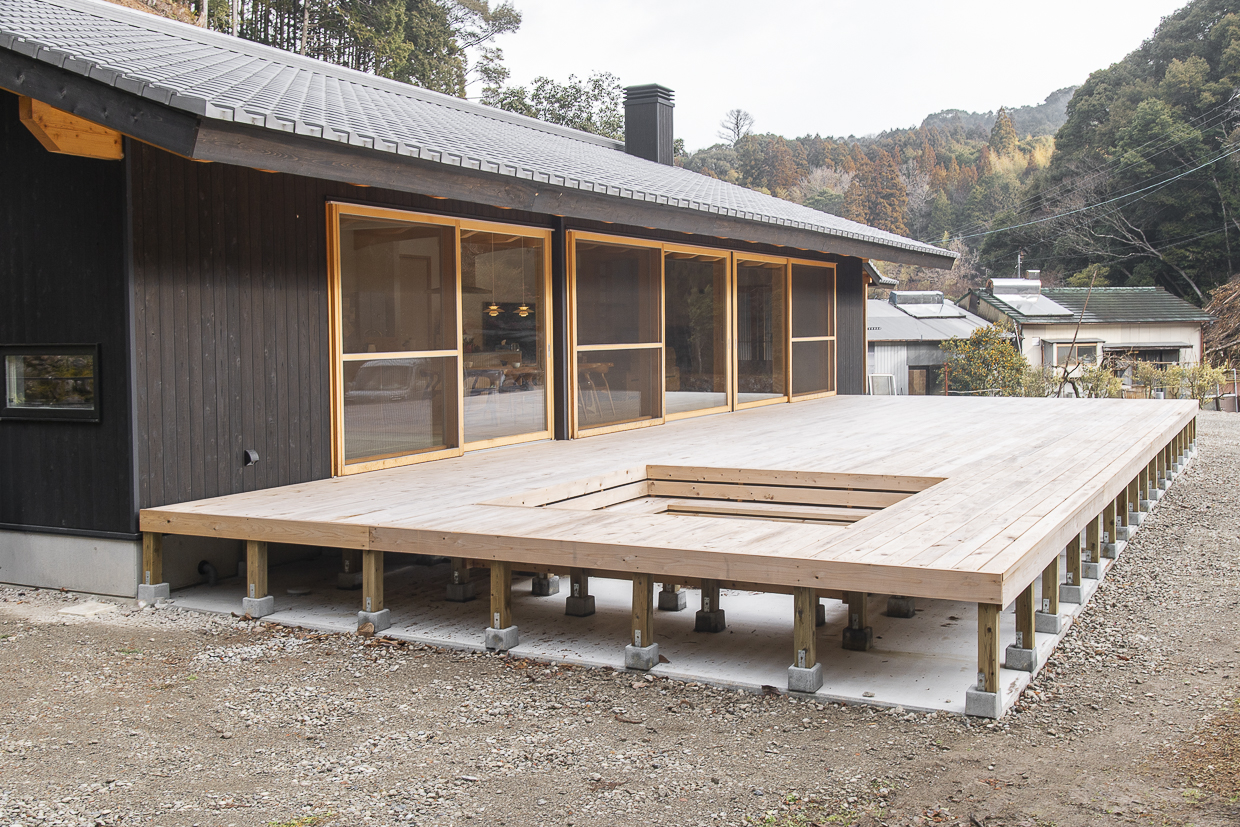 高知県四万十市江ノ村は山に囲まれた自然豊かな地域です。高知龍馬空港から車で3時間。山田邸は鳥のさえずりが聞こえる静かな山間部にあり、昨年ウッドデッキが完成しました。施主の山田様と設計・施工を行なった有機的建築村上・代表村上直樹氏にウッドデッキ工事についてお話を伺いました。