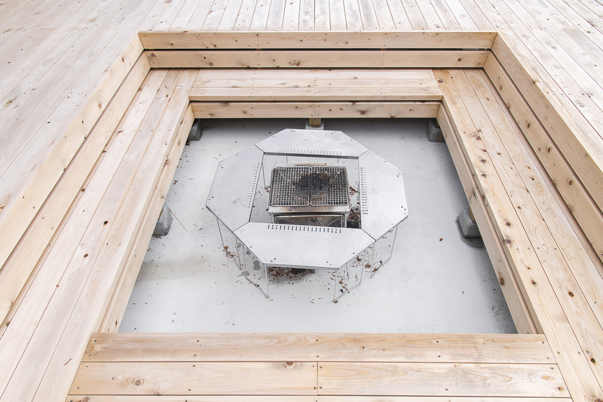 また、デッキより低いスペースのため、周りが木の壁になっていて多少の風が吹いても火が消え難い設計になっています。季節によりますが、夜も快適に過ごすことができると思います」。