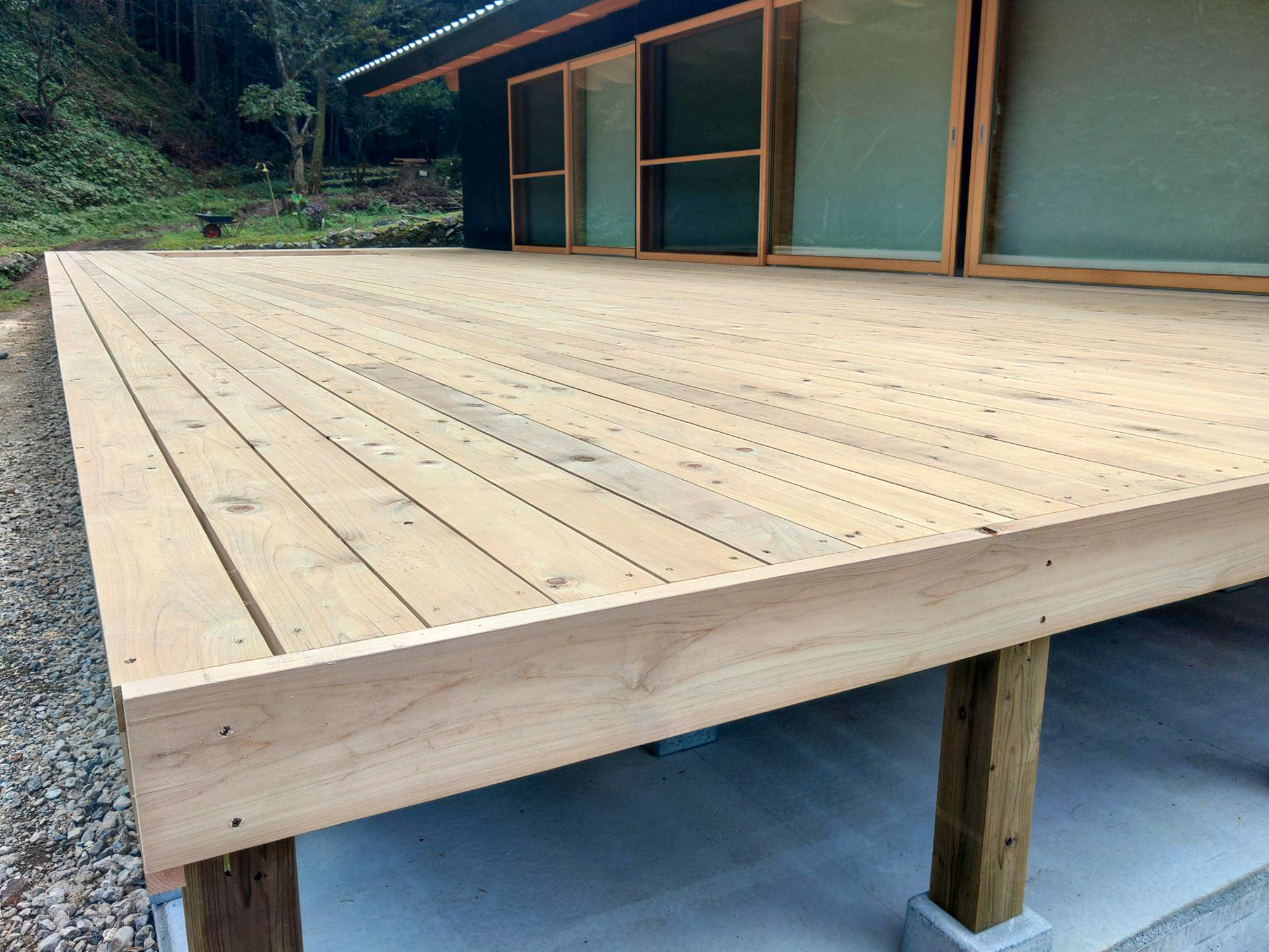 防腐処理等の種類・塗装・工法 大引・束:スギ 床材・幕板:四万十ヒノキ どれらも高知県産材を使用 加圧式防腐処理を行い、JAS規格の性能区分はK4相当です。 PRポイント 高知県の風土に合った、高知県で育ったスギと、四万十ヒノキを使用しています。ウッドデッキでくつろいだり、BBQをしたりするために、ステップを起用。自然に囲まれ、癒されるスペースとなっています。 基本情報 物件種別住宅 所在地高知 使用木材 スギヒノキ 施工会社有機的建築村上