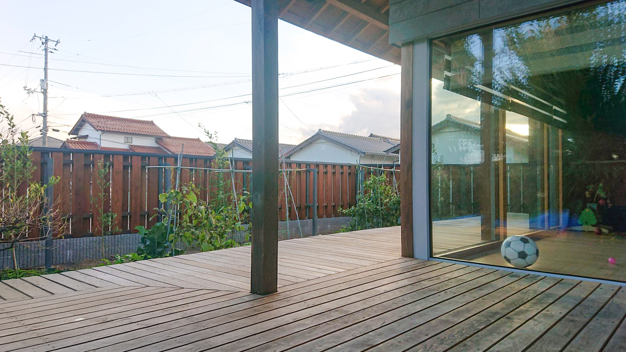 そこで長期的な耐久性が必要な横桟のみに加圧保存処理を施し、部分的な張替えのある板材はコストを抑えるために保護塗料のみとしました。