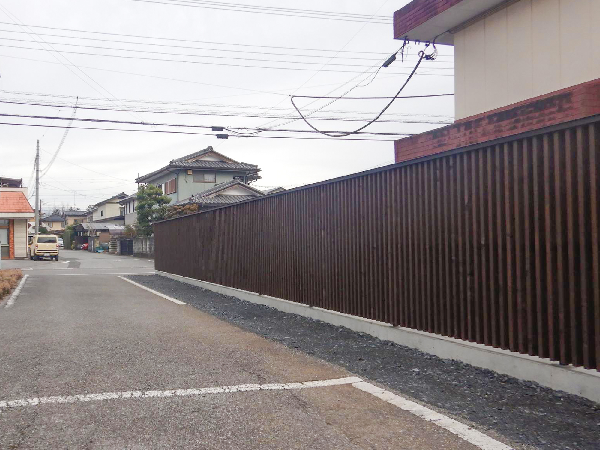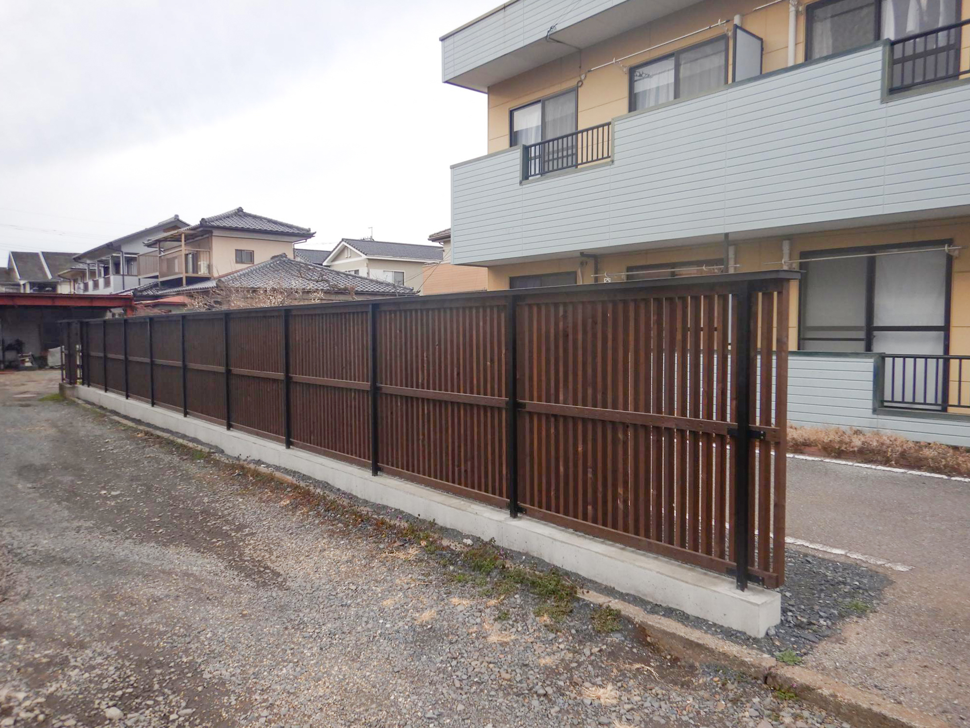 アパートの駐車場への進入路、囲いとして施工いたしました。もともとは垣根がありましたが、手が掛かる事と枝葉のスペースが進入路の幅を狭めていた為、ご依頼いただきました。