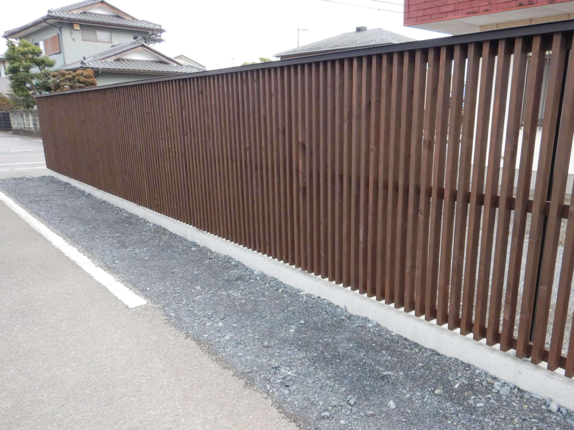 完全に視線をふさがない圧迫感の無いデザインで、風通しもよく、木の質感が残る落ち着いた雰囲気に仕上がりました。